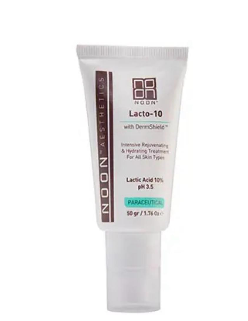 Lacto-10 este o cremă unică, care accelerează rejuvenarea în timp ce netezește textura pielii, îi îmbunătățește nuanța și nivelul de hidratare. Cu aditivul DermShield, acidul lactic 10% (pH 3,5) permite utilizarea cremei pe toate tipurile de piele, în orice anotimp și fără iritațiile tipice asociate utilizării AHA.